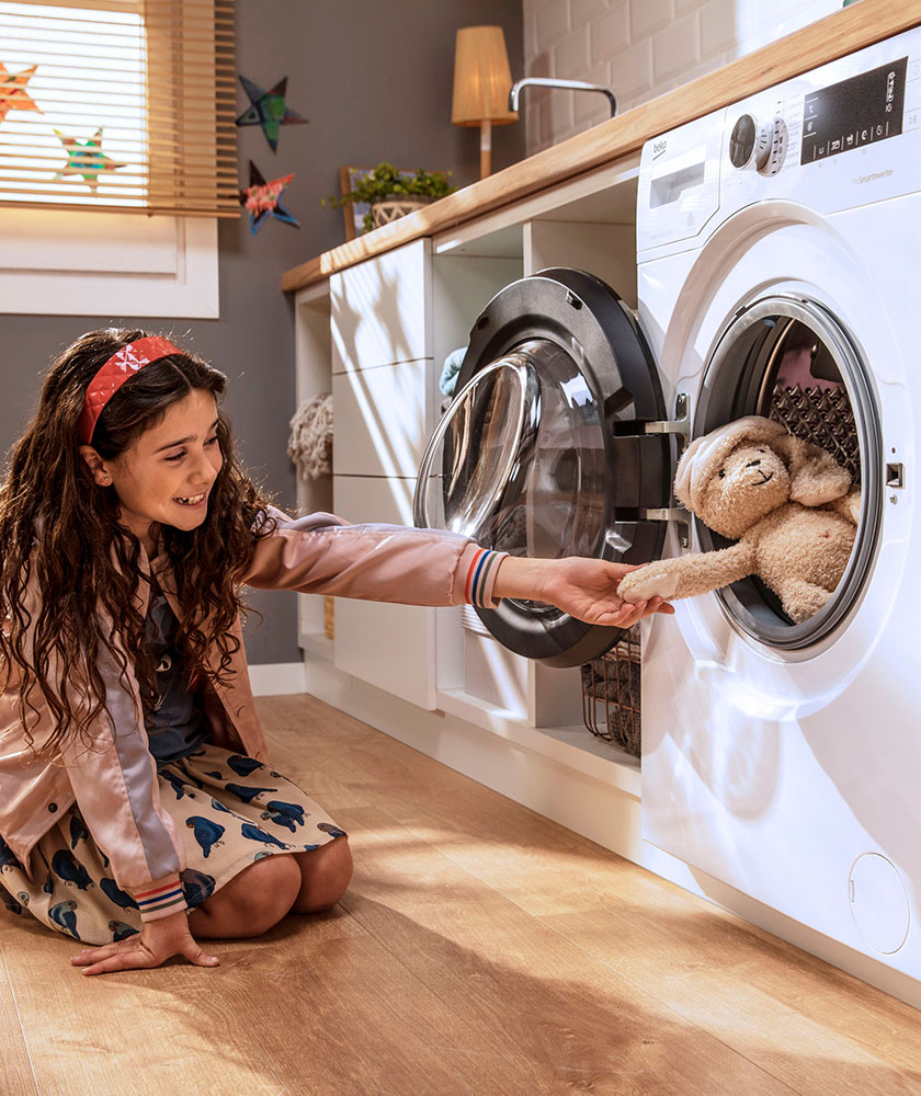 Beko's range of freestanding washing machines offer some advanced technology to make doing laundry less of a chore. Like the AutoDose feature which automatically dispenses just enough laundry liquid for every programme. Or the Daily Quick programme that lets you wash a full load of laundry in just 28 minutes, at 30°C. And for those of us with allergies, the SteamCure Hygiene+ program uses high temperature to reduce household allergens by up to 99.9% (approved by Allergy UK)