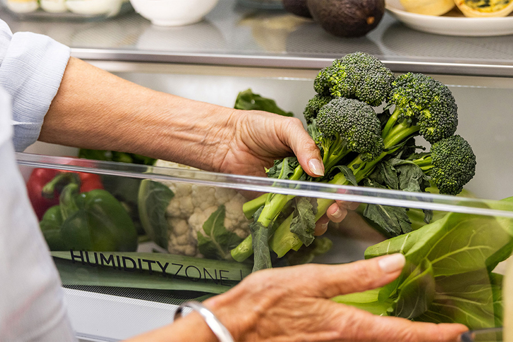 5. Customise your storage. Fruits and veg have different ‘chilling’ requirements to other cold produce – ideally choose a fridge that allows for flexible chill zones.