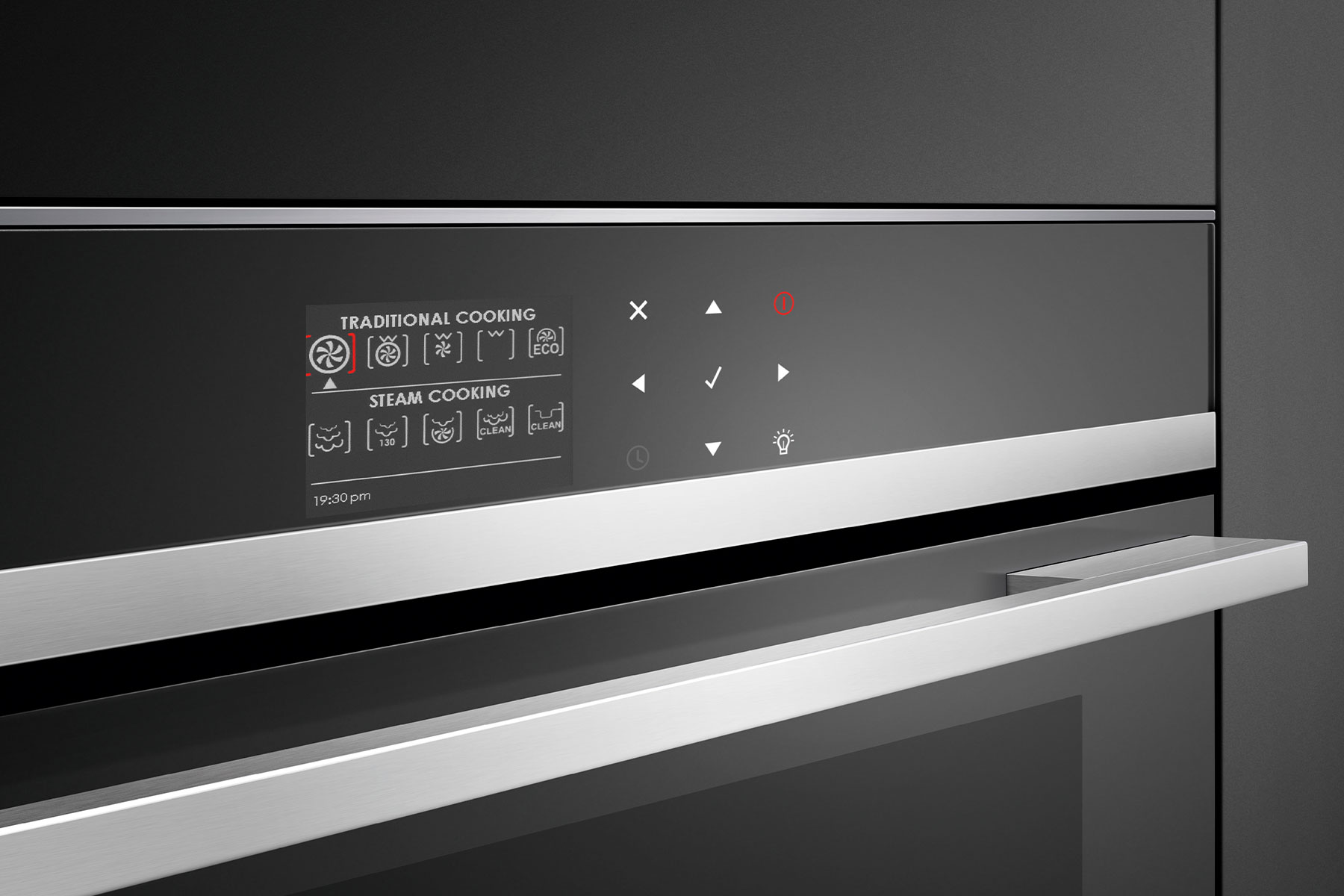 Touchscreen interface: enables you to cook with a favourite method, hero ingredient, cooking function or recipe. Your oven can guide you through the steps, or change the temperature and heat type automatically, depending on your selection.