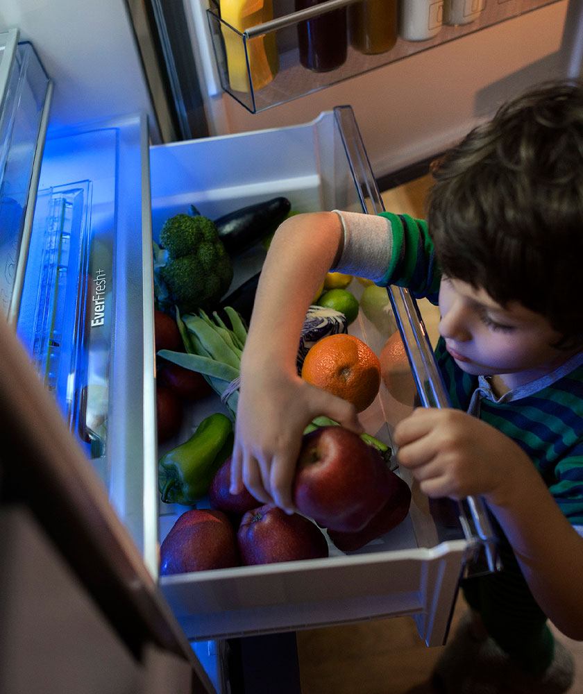 Even our fridges feature superior fresh cooling options that help keep food fresher for longer. Active Fresh Blue Light™ for example, which helps to continue photosynthesizing, preserving vitamin C levels, natural flavours and nutrients in fruits and veg, and keeping them fresh for up to 30% longer.