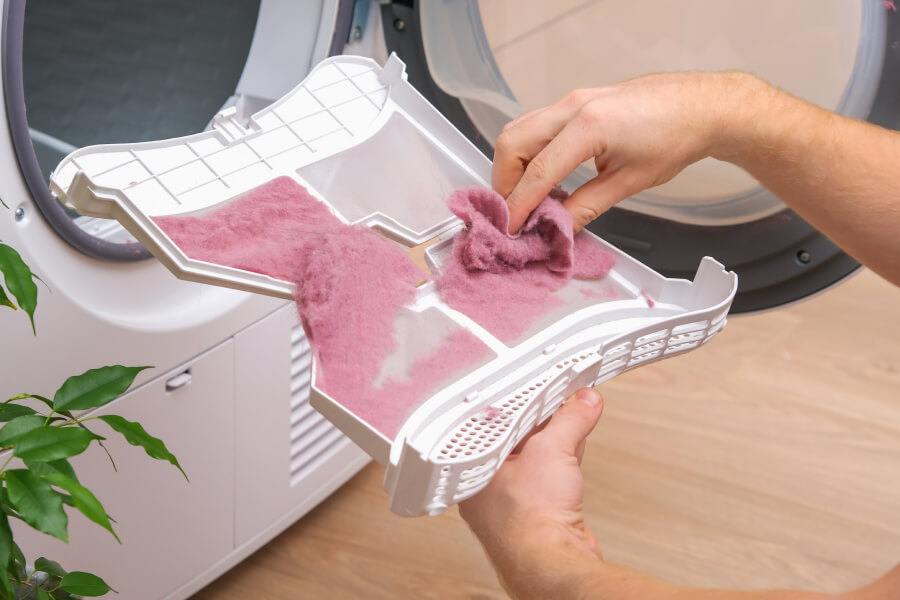 Dryers rely on airflow in order to work properly, and a lint filter that’s clogged with lint or fabric softener can extend drying times as well as be a fire risk.