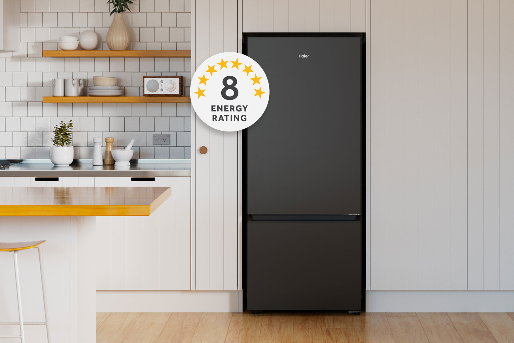 The good news is that Haier have New Zealand's first and only** refrigerator with an 8-star energy rating. This 70cm bottom-mount fridge (HRF420BEC) operates on 59.9% less energy consumption compared with a 3.5-star refrigerator* without compromising on performance. It combines high efficiency inverter compressor technology and vacuum insulated panels to achieve optimal temperature control.